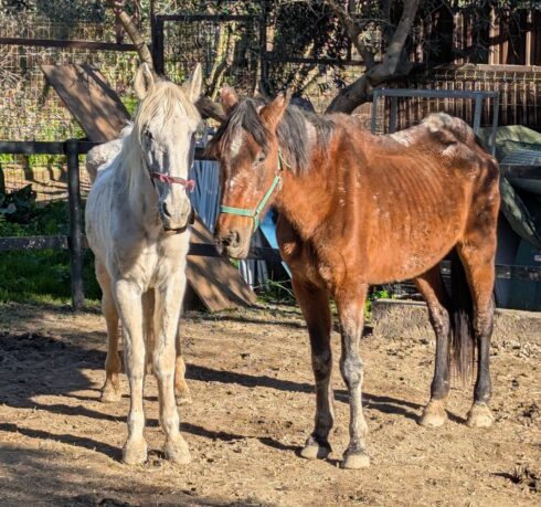 After moving to the rescue centre, one of the horses was discovered ‘lying down in the paddock, unable to gather enough strength to stand up’.