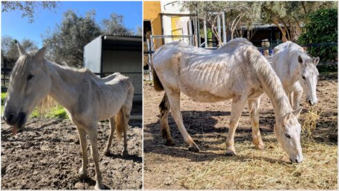 The animals were found by the La Linea de la Concepcion Policia Local in a ‘flooded field without any access to food’, according to the Andalucian Rescue Centre for Horses (ARCH).