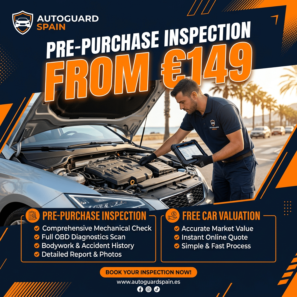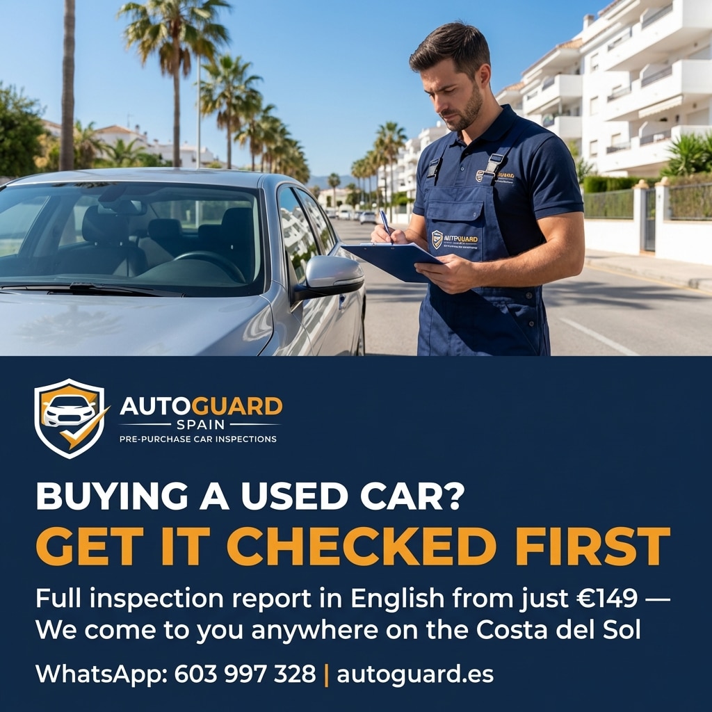 Thinking of Buying a Used EV on the Costa del Sol?A used EV without a battery health check is one of the riskiest purchases you can make. AutoGuard Spain’s pre-purchase inspection covers battery State of Health reporting, OBD diagnostics, DGT history verification, mileage check, and a full written report in English — all within 24 hours.Don’t let a degraded battery cost you thousands. Book your EV inspection from just €149.🌐 autoguard.es📲 WhatsApp: 603 997 328Sources: Wallbox / Plan Auto+ Programme (2026), RentaCarMarbella EV Charging Guide, EV Buyer Guide 2026, CleanTechnica Spain 50,000 Charging Points, Eleport Best Electric Cars Europe 2026, Alternative Fuels Observatory Spain e-Mobility Incentives 2026.