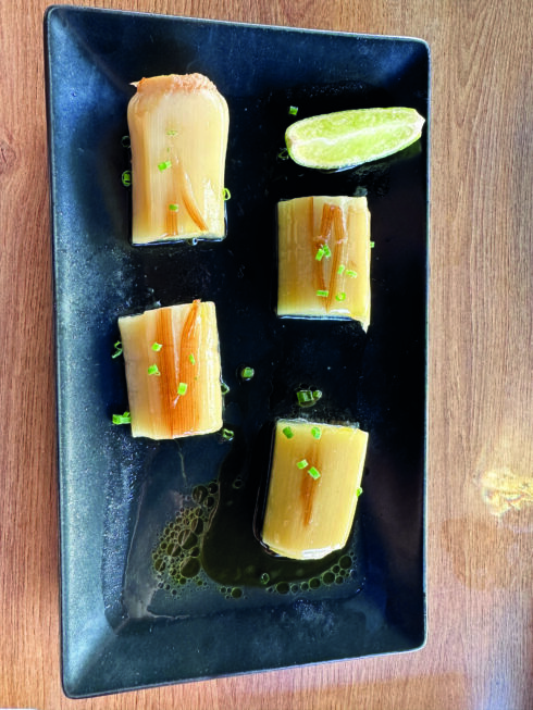 I liked the Gildas with truffled Iberian Burrata, a tomato and anchovy, and a mixture of olives, pepper, and anchovy.